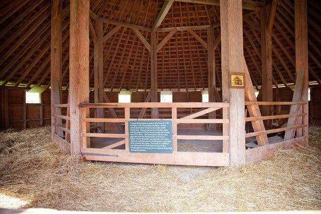 The Treading Barn was a 16-sided barn Washington designed to keep wheat clan and safe from weather. How did the 16-sided barn work, and why did George Washington see a need for it? Traditionally, wheat was threshed by hand. After harvesting, workers would undertake the slow and backbreaking process of beating the wheat with a flail to break the grain out of the straw. Alternatively, wheat was sometimes "treaded out," or trampled by horses, on open ground. Although this second method was more efficient than the first, it had the disadvantage of being highly unsanitary – in that dirt and horse excrement would become mixed in with the grain. Further, with both methods, the grain would be exposed to the vicissitudes of weather throughout the threshing process. So in order to operate more efficiently, reduce loss, and improve the quality of his grain, Washington decided to move the treading process indoors.